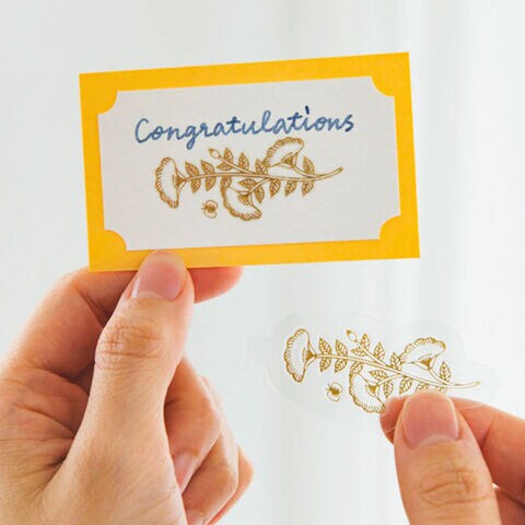 元から箔押しされているような仕上がりが楽しめる転写シールです。