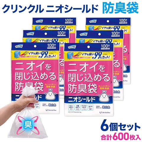 ライフ堂 クリンクル 二オシールド ニオイを閉じ込める 防臭袋 乳白色 100枚入 6個セット 100枚入×6個セット(600枚)