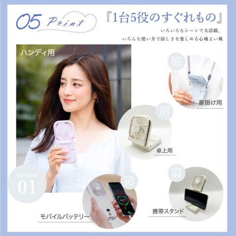 扇風機|ハンディファン|卓上|首掛け|暑さ対策|携帯扇風機|携帯スタンド|モバイルバッテリー|軽量|薄型|スタイリッシュ|おしゃれ|かわいい|コンパクト|真夏|猛暑|涼しい|5WAY|冷却|冷感|USB|充電式|軽量|コンパクト|小型|薄型|静音|