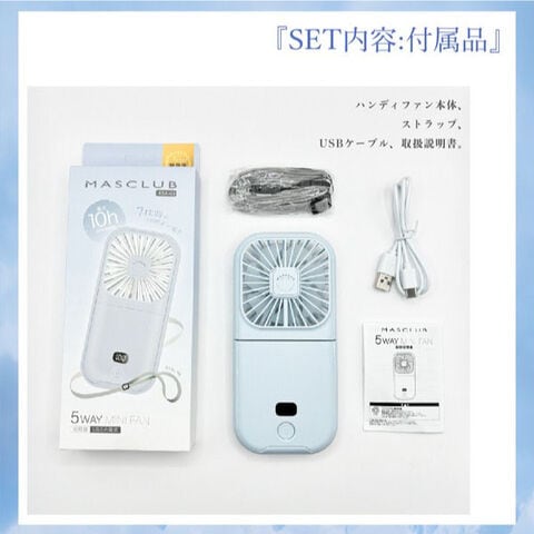 付属品:ハンディファン本体、ストラップ、USBケーブル、取扱説明書