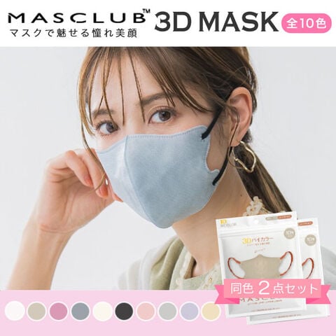 MASCLUB 3Dマスク バイカラー 3層構造 不織布マスク 普通サイズ 同色20枚(10枚×2)セット グレージュ