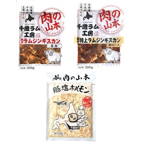 千歳ラム工房 味付ジンギスカン&ホルモン セット (味付ラム1袋・特上味付ラム1袋・豚塩ホル2袋/冷凍) ジンギスカン 肉 羊肉 豚肉 BBQ 焼肉 ギフト 贈り物 お祝い お礼 内祝い プレゼント 自宅用 家庭用 おうち用 北海道 肉の山本 グルメ お取り寄せ