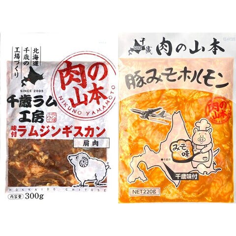 千歳ラム工房 味付ジンギスカン&ホルモン セット (味付ラム2袋・豚みそホル2袋/冷凍) ジンギスカン 肉 羊肉 豚肉 BBQ 焼肉 ギフト 贈り物 お祝い お礼 内祝い プレゼント 自宅用 家庭用 おうち用 北海道 肉の山本 グルメ お取り寄せ
