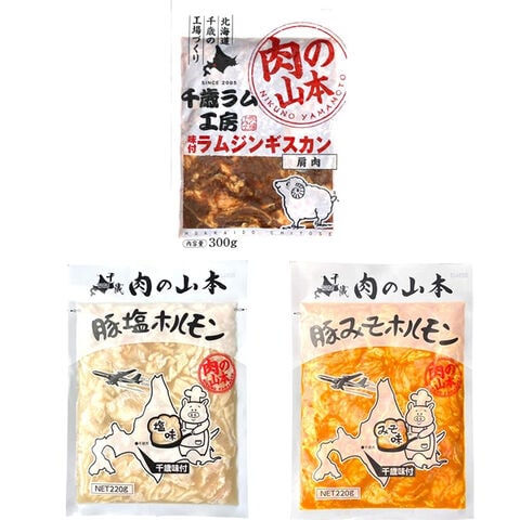 千歳ラム工房 味付ジンギスカン&ホルモン セット (味付ラム2袋・豚塩ホル1袋・豚みそホル1袋/冷凍) ジンギスカン 肉 羊肉 豚肉 BBQ 焼肉 ギフト 贈り物 お祝い お礼 内祝い プレゼント 自宅用 家庭用 おうち用 北海道 肉の山本 グルメ お取り寄せ