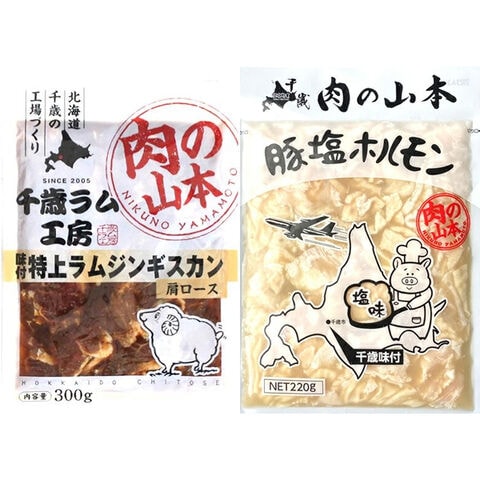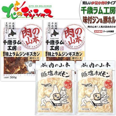 千歳ラム工房 味付ジンギスカン&ホルモン セット (特上味付ラム2袋・豚塩ホル2袋/冷凍) ジンギスカン 肉 羊肉 豚肉 BBQ 焼肉 ギフト 贈り物 お祝い お礼 内祝い プレゼント 自宅用 家庭用 おうち用 北海道 肉の山本 グルメ お取り寄せ