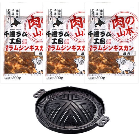 ジンギスカン ラム肉 味付きジンギスカン (味付ラム300g×3p/本格鍋/26cm/穴あり) じんぎすかん ラム 肉 羊肉 鍋付 ジンギスカン鍋 焼肉 BBQ ギフト 贈り物 お祝い お礼 内祝い プレゼント 自宅用 家庭用 おうち用 北海道 肉の山本 千歳ラム工房 グルメ お取り寄せ