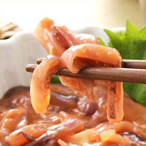 | 原材料名 | ■いか、砂糖、食塩、いか肝臓、酒粕、みりん、D-ソルビトール、調味料(アミノ酸など)、酒精、ph調整剤、増粘多糖類、甘味料(ステビア・カンゾウ)、着色料(ベニコウジ色素・パプリカ色素) |