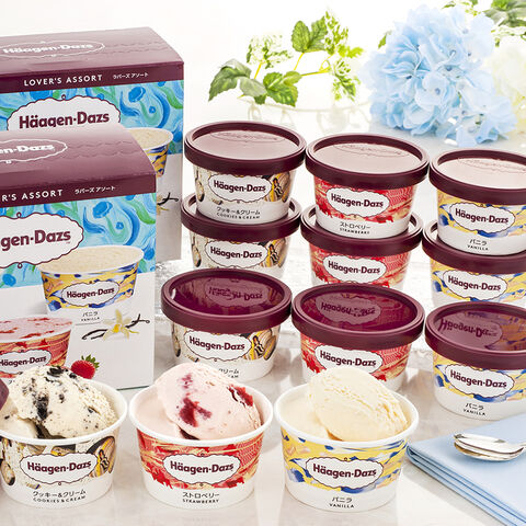 ■1箱 21個入り ・ハーゲンダッツラバーズアソート(バニラ・クッキー&クリーム・ストロベリー各70ml×各2)×2、苺アイス約20g×9 ※パッケージ・仕様・成分などは予告なく変更になる場合がございます。なお、旧商品在庫がなくなり次第、リニューアル品(新商品)での発送となる場合もあります。その場合はどうぞご了承下さいませ。 | ||