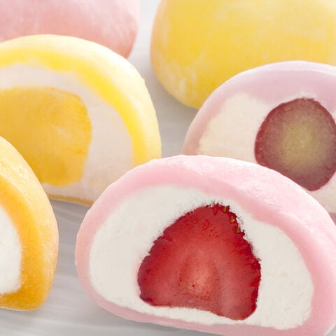 ■マンゴー:もち米(国産)、乳等を主要原料とする食品(植物油脂、脱脂濃縮乳、澱粉、卵黄油)、マンゴー、もち粉、砂糖、ぶどう糖シロップ、もち粉加工品、ゼラチン、粉末卵黄、食塩/トレハロース、着色料(クチナシ、コチニール)、甘味料(ソルビトール)、安定剤(加工でん粉)、香料、酵素、(一部に小麦・卵・乳成分・大豆・ゼラチンを含む)