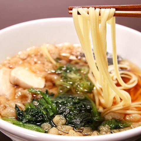 ■おすすめ調理方法 1、沸騰したお湯(めん90g1束に対して1リットルが目安)に沸騰後麺を入れ5分半お好みの硬さにゆでます。 2、スープ1袋に対して丼などに熱湯300ccを注ぎスープを作ってください。 3、めんが茹で上がりましたら手早くお湯を切りスープの入った丼等に移してください。 4、定番の具材はほうれん草、鶏肉、きざみのり、天かすです。具材を盛り付けると一層おいしくお召し上がりいただけます。 |