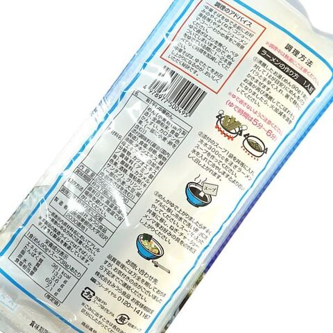 ■おすすめ調理方法 1、沸騰したお湯(めん90g1束に対して1リットルが目安)に沸騰後麺を入れ5分〜6分お好みの硬さにゆでます。 2、スープ1袋に対して丼などに冷水300ccを注ぎスープを作ってください。氷を入れて冷やすとよりおいしく召し上げれます。 3、めんが茹で上がりましたら手早くざるに移し冷水で洗い十分に冷やしてください。 4、スープの入った丼等に移し、ねぎ、チャーシュー、メンマ等具材を盛り付けると一層おいしくお召し上がりいただけます。 |