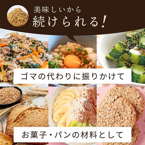 【お召し上がり方】1日約5gを目安に、そのままお召し上がりいただくか、サラダやおひたし、ごはんにふりかけてお召し上がりください。 アイスやヨーグルトなどデザートへのトッピング、パン・クッキー生地に混ぜたりと、幅広くお使いいただけます。
