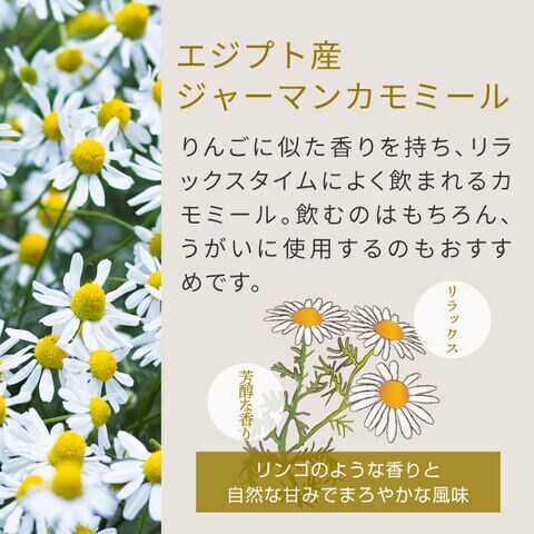 本商品は「カモミールジャーマン(ジャーマンカモミール)」です。ノンカフェインなので、お子様から高齢者の方までお召し上がり頂けます。