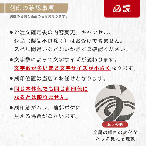 ・名入れ刻印はご注文をいただいた時点でキャンセル・変更受付は出来かねます。