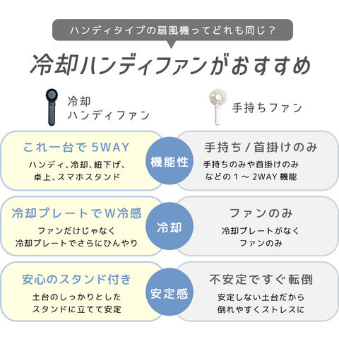 | これ一台で5WAY! 高機能なのに余分を削ぎ落として軽やかさに配慮した設計! ハンディ、冷却プレート、紐下げ、卓上、スマホスタンドでも♪ |