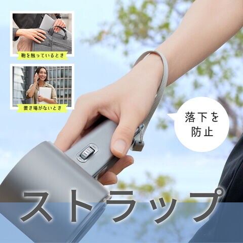 | 【ストラップ付き】 手首にかけてご使用いただけます。 落としたり失くしたりといった心配も解決してくれて、鞄の中を探すときや一旦どこかに置きたいのに置き場がない時など、ストラップを通しておくと大活躍! |