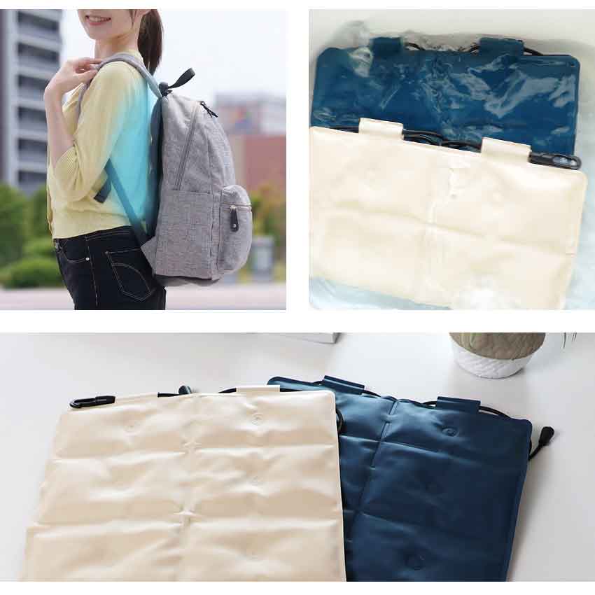 | 暑い季節の背中の蒸れをすっきり涼しく。 リュックに付けるだけの簡単暑さ対策に。 |