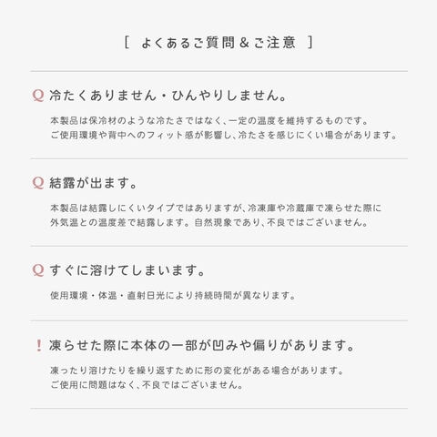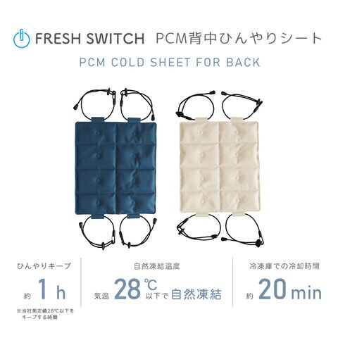 | 【DETAIL】 商品名:FRESH SWITCH PCM背中ひんやりシート サイズ:約22.5cm×28cm 重さ:約275g 素材:表材 TPU(熱可塑性ポリウレタン)/ 中材 PCM(特殊冷却物質)/ 紐 ポリプロピレン ラテックス、留め具 ポリプロピレン 製造:中国 |