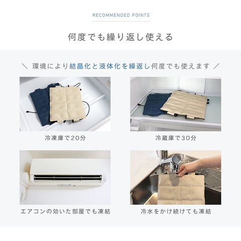 | 【繰り返し使えるエコ仕様】 お出かけの準備前や作業前などにセット。 短時間で凍結するので使いたい時にさっと使えます。 |