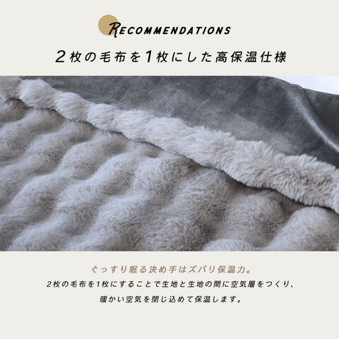 | SNSでバズった大人気ふわもこ毛布、SLEEPSLEEPのフワッフル。 ラビットファーのような生地とミンクファー調の生地2枚を合わせたラグジュアリーな雰囲気。 生地と生地の間に温かな空気を保温し、空気の層を閉じ込めます。 見かけだけじゃない確かな温かさにも優れた毛布です。 |