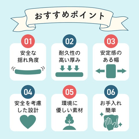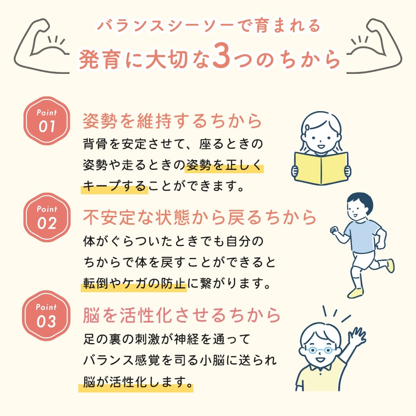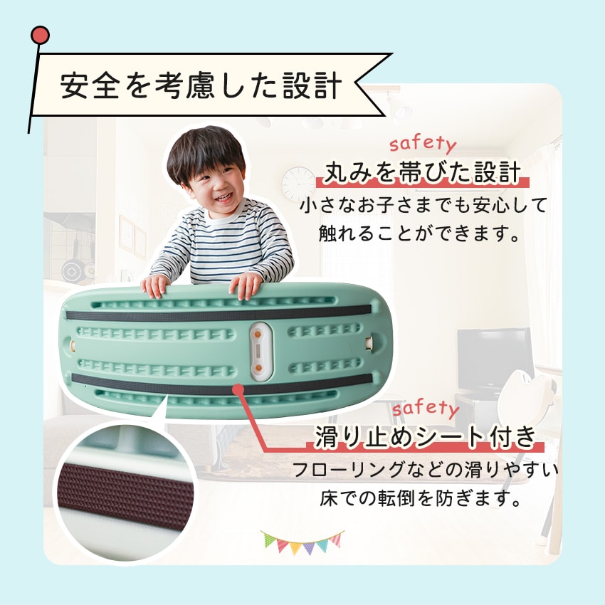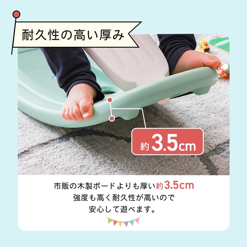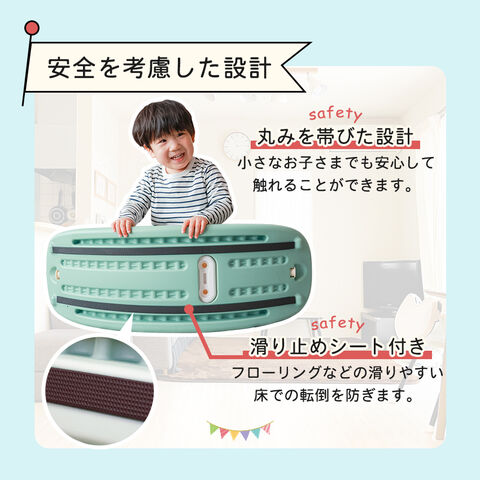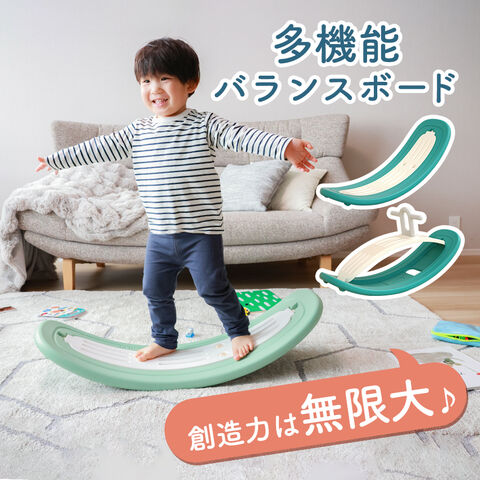 | 【多機能バランスボード】 シーソーにも木馬にもなるバランスボード! 遊びながらバランス感覚を鍛えよう! 【おうちで楽しく運動♪】 現代の子どもたちは運動の機会が少ない…。 ケガをしたり体調を崩したりしやすくて心配。 そんなお悩みをこのバランスボードが解決します◎ 【遊び方いろいろ】 バランスボードだけでなく ハンモックやテーブルにすることもできます! 遊び方は無限大! 【部品を外して木馬になる】 組み替えるとバランスボードから木馬に変身! またがってゆらゆら遊べます! 【安全な揺れ角度】 揺れの角度は0°~35° 転倒の心配はなく 子どもが安心して全力で楽しめる角度です。 【耐久性の高い厚み】 市販の木製ボードよりも厚い約3.5cm。 強度も強く耐久性が高いので安心して遊べます! 【親子で一緒にエクササイズ♪】 ひとりでは不安なお子さまも安心! 耐荷重75kgなので大人も乗ることができます! 【安定感のある幅】 幅85cmの幅広いボード。 床との接触面が多いので揺れても転倒しにくくなっています! 【安全を考慮した設計】 丸みを帯びた設計なので小さなお子さまでも安心して触れることができます! 滑り止めシートが付いており フローリングなどのすべりやすい床での転倒を防ぎます! 【環境に優しい素材】 環境に優しいPE素材を使用。 軽量で破れにくく 毒性が低いので安全性が高い素材です! 【お手入れ簡単】 水洗いOK! カビに強く 色が落ちる心配はありません! |