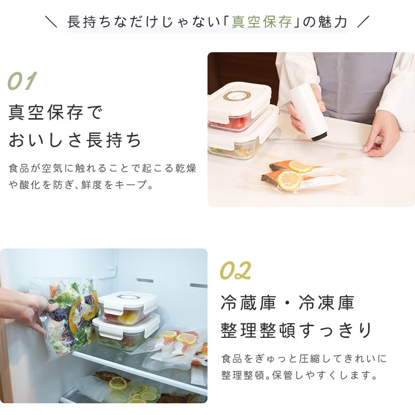 真空保存シリーズ Modaz 真空パック 真空保存容器 専用袋 真空袋 10枚セット 密閉容器 M 630ml L 1040ml 真空パック機 真空シーラー フードシールド 袋 脱気シーラー 汁物対応 冷凍 食品 保存 強力吸引 簡単操作 作り置き 便利 おすすめ ハンディ 乾湿対応 多機能 乾燥物