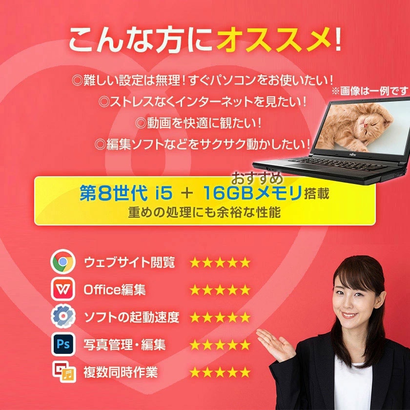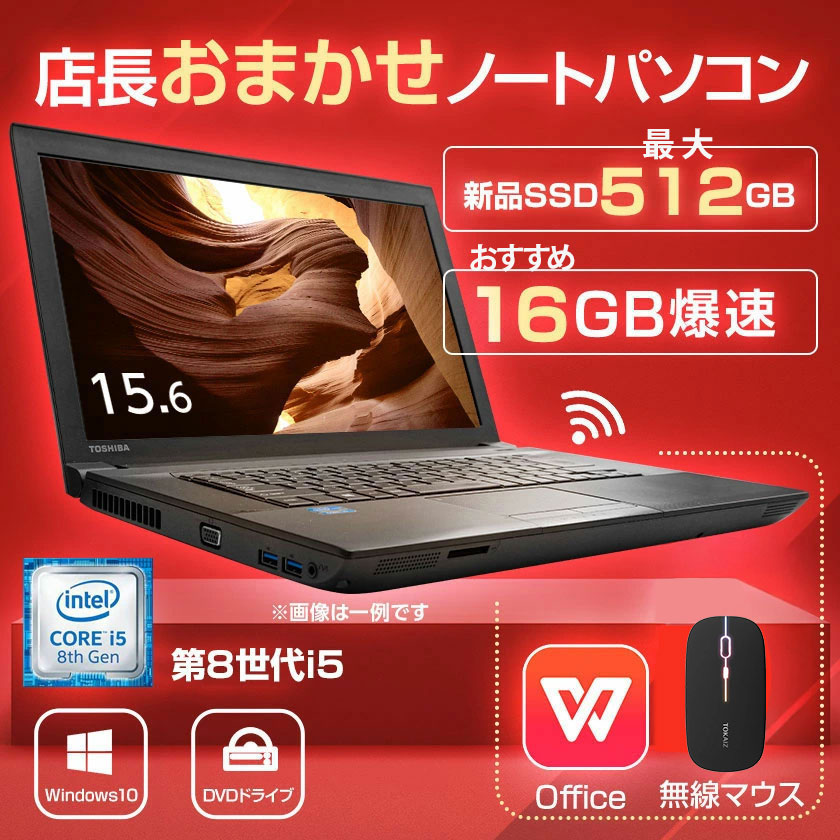 Webカメラ付き 【第8世代 Corei5 Win11要件に満たす品】 中古ノートパソコン Windows10 Windows11 ssd 128~512GB メモリ 8GB~32GB 中古パソコン ノート 店長オススメ おまかせ 15.6型 無線LAN DVDドライブ OFFICE 付き