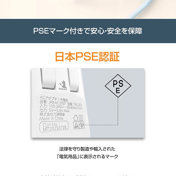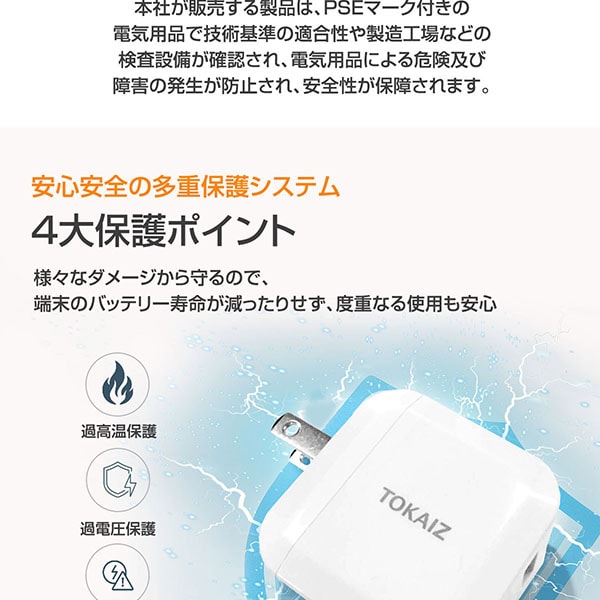 ACアダプター USB-ACアダプタ 急速充電器 2ポート 5V 3.4A USB スマートIC 充電器 チャージャー PSE認証 USB充電器 AC充電器 コンセント アンドロイド スマホ アイフォン iPhone Android TOKAIZのレビュー