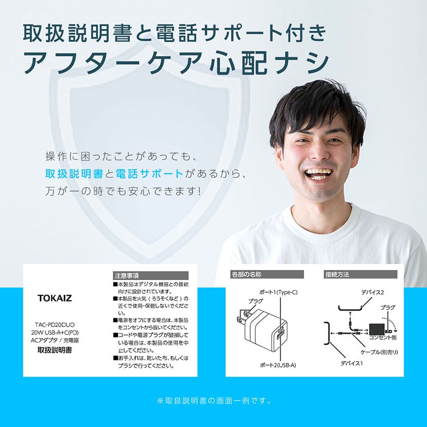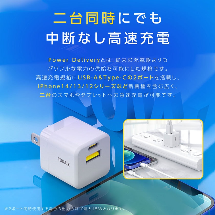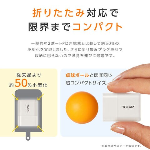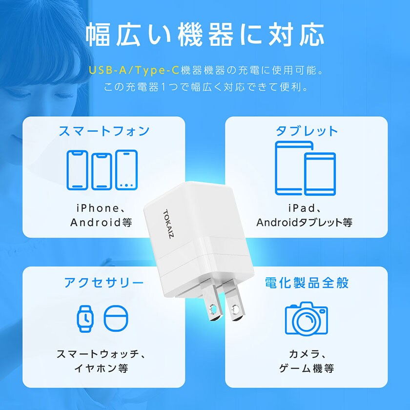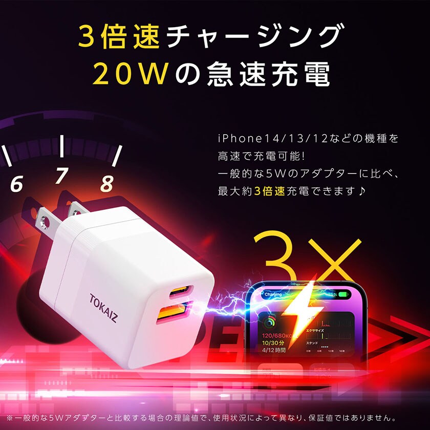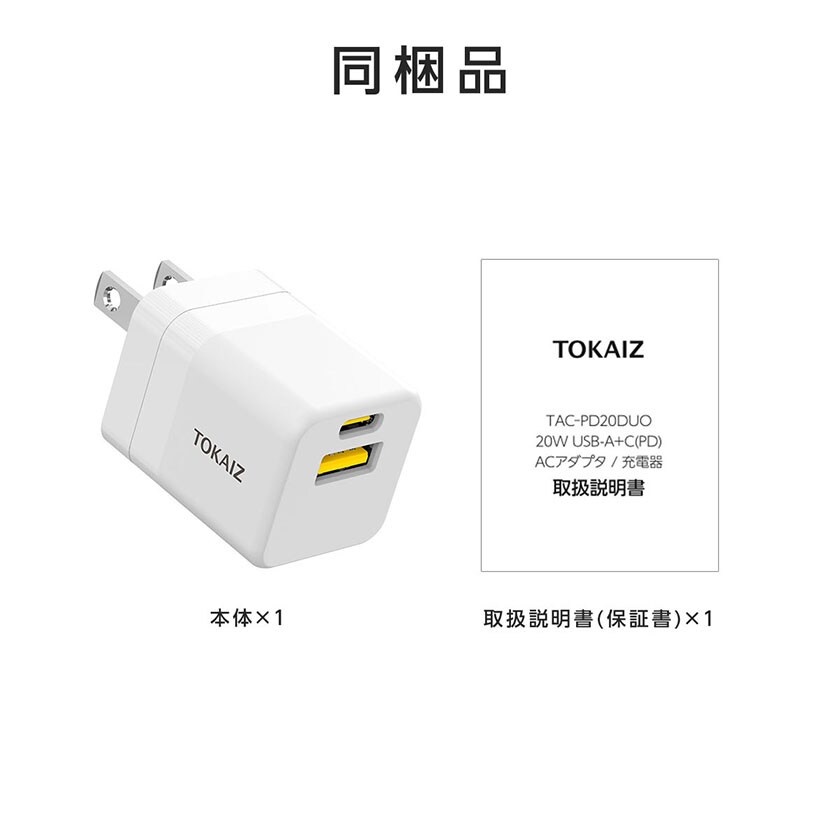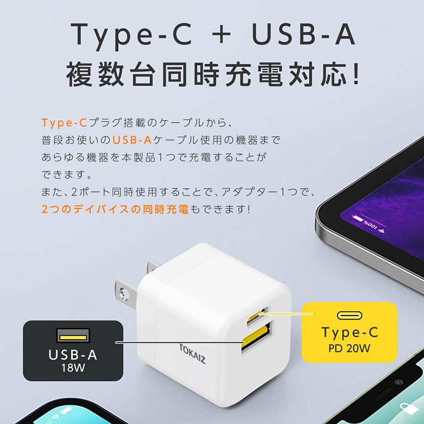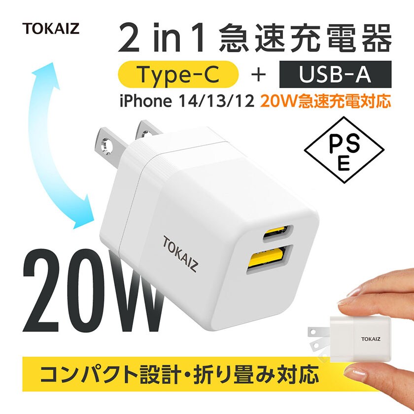 acアダプター type c usb 5v2a PDアタブター 急速充電 20W 小型 充電器 2台同時充電 iPhone Android スマートウォッチ カメラ ゲーム機 折り畳み式プラグ コンパクト 海外対応 PSE認証 TOKAIZ