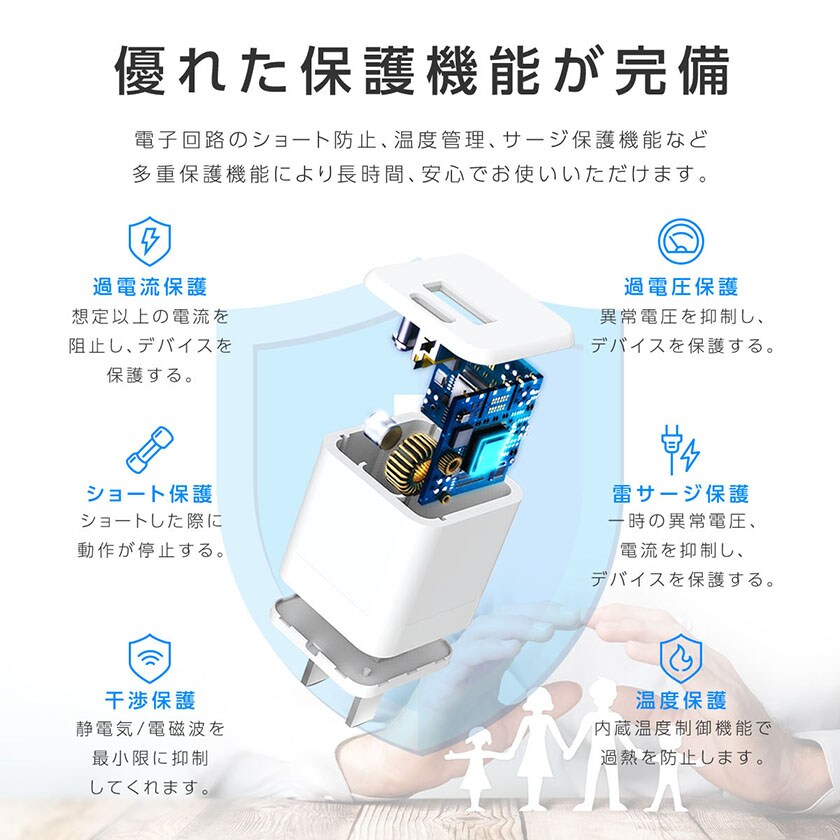 ・【保護機能完備】サージ保護、過電圧・電流保護、ショート保護、温度保護、干渉保護などの保護機能が完備でより長く使用いただけます。