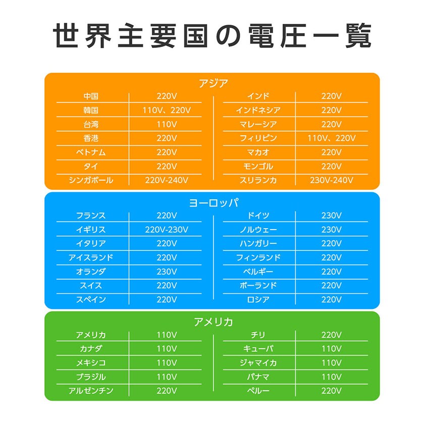 ・【ワイド電圧100~240V対応】ワイド電圧対応だから、海外旅行の時でも困ることなく使用できます!