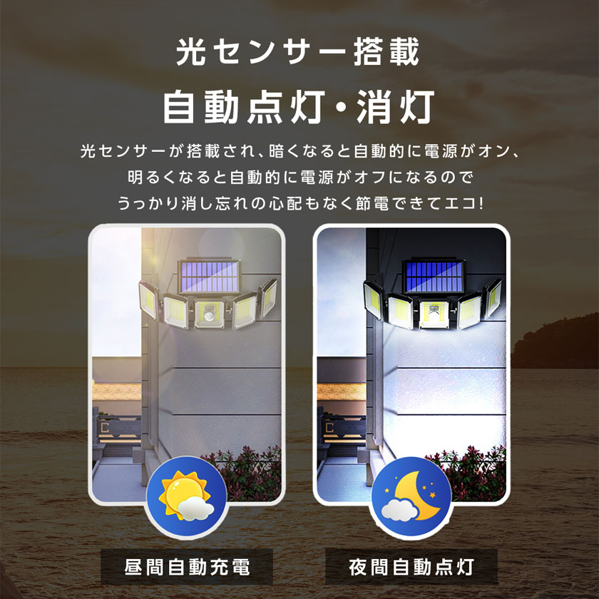 ・【光センサー搭載】光センサーが搭載され、暗くなると自動的に電源がオン、明るくなると自動的に電源がオフになるのでうっかり消し忘れの心配もなく節電できてエコ!