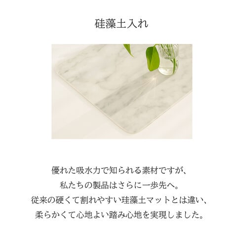・【吸水性・速乾性素材】珪藻土の優れた吸水性により風呂上りの濡れた足の水分をすばやく吸い取り、無数の小さな穴から水分を蒸発させ、足をさらさらにします。・【柔らかな踏み心地】通常の硬質珪藻土バスマットより柔らかくて踏み心地も快適です!ベタベタの足で乗っても、すぐにサラッとします。