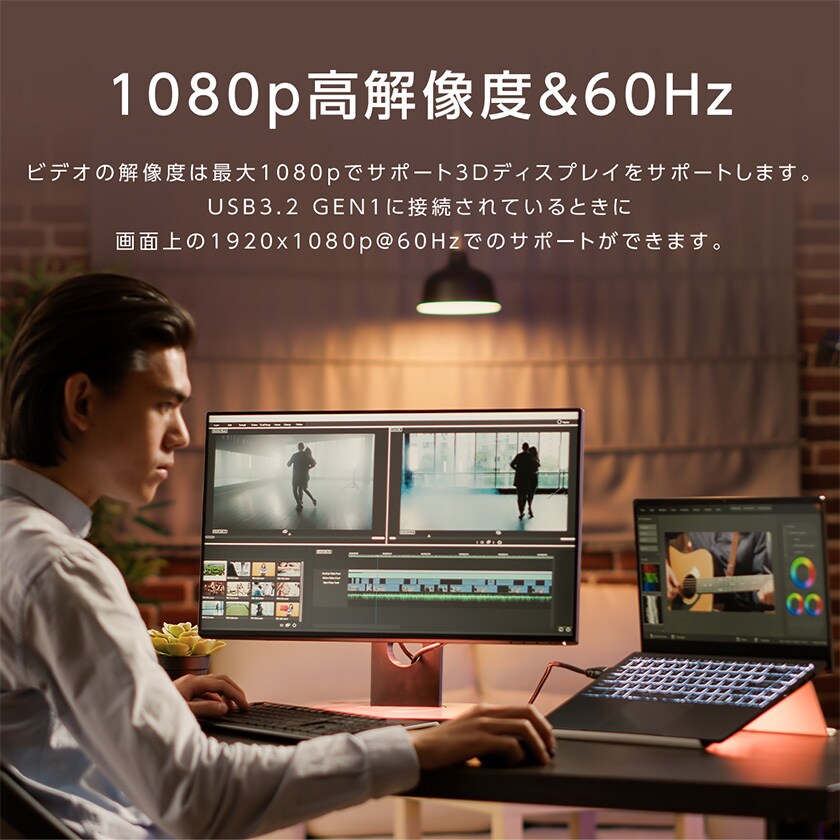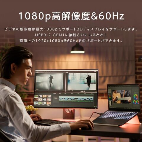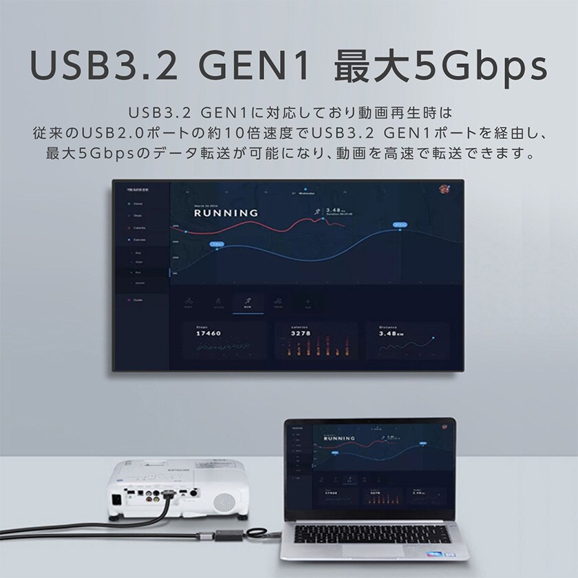 ・【USB3.0 最大5Gbps】USB3.0に対応しており動画再生時は最大5Gbpsのデータ転送が可能になり、動画を高速で転送できます。・【1080p高解像度&60Hz】ビデオの解像度は最大1080pで3Dディスプレイにもサポートします。