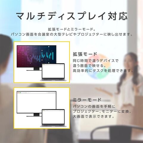 ・【マルチディスプレイ対応】拡張モードとミラーモード。パソコン画面を会議室の大型テレビやプロジェクターに映し出せます。