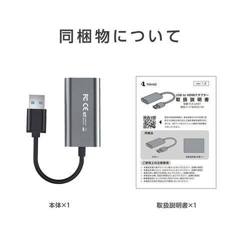 USB HDMI変換アダプター HD 1080P USB3.0 to HDMI 変換ケーブル モニター usb変換アダプタ Windows 11 10 8.1 8 7 XP対応 コンバーター 日本語説明書付き 父の日 TOKAIZ