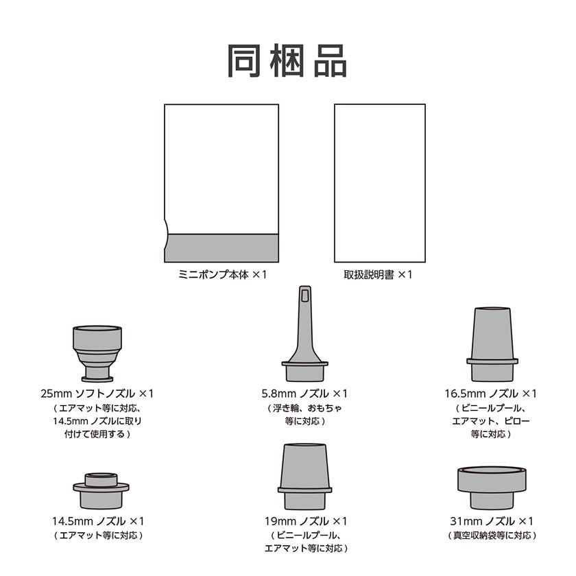 ・【真空機能】高速圧縮でプール、浮き輪等をすっきりコンパクトに。・【6種類のノズル付き】様々なシーンに対応できる6種類のノズル付きます。