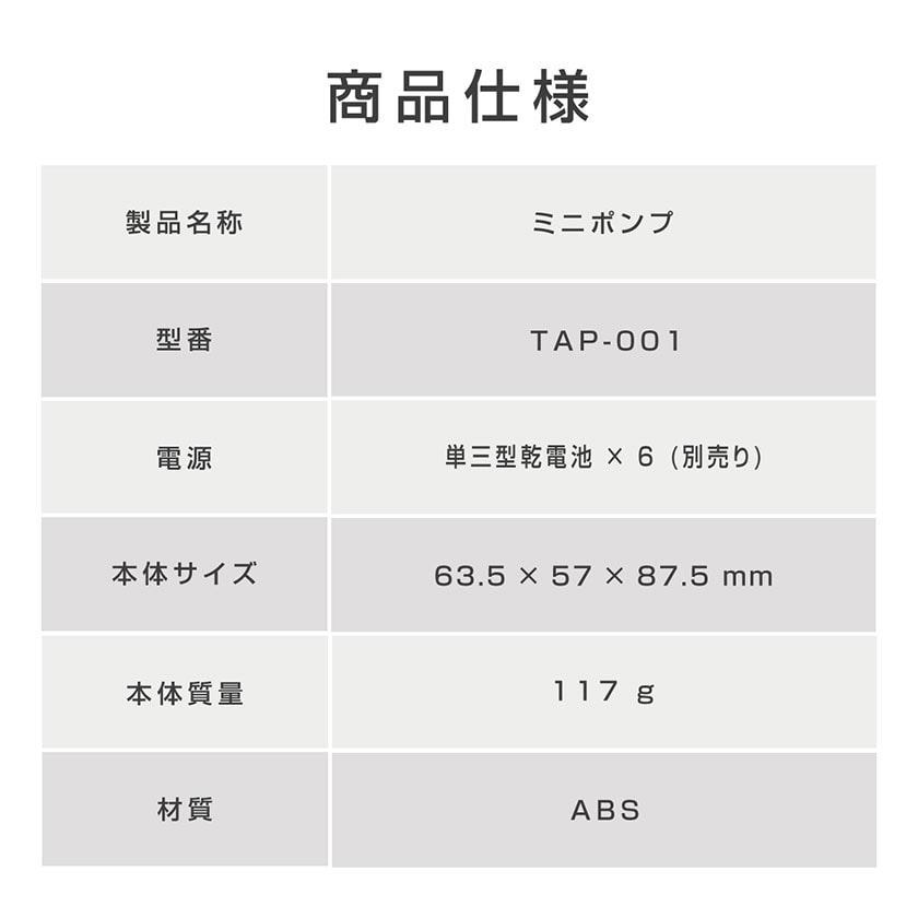 電源:単三型乾電池×6(別売り) 本体サイズ:63.5×57×87.5mm 本体質量:117g 材質:ABS |