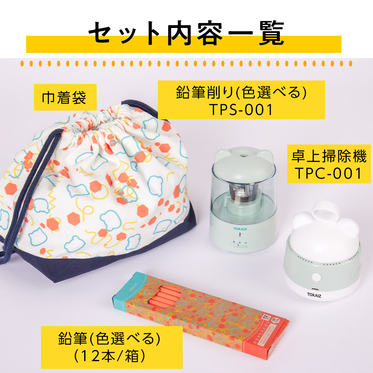 セット内容 充電式鉛筆削り、卓上掃除機、巾着袋、2B鉛筆