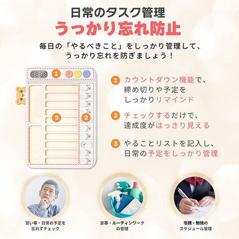 ・【作業漏れ&忘れ物防止で安心管理】 やることリストをチェックしながら、忘れ物や作業ミスを防止。お子様の学校準備や職場での業務管理に最適です。