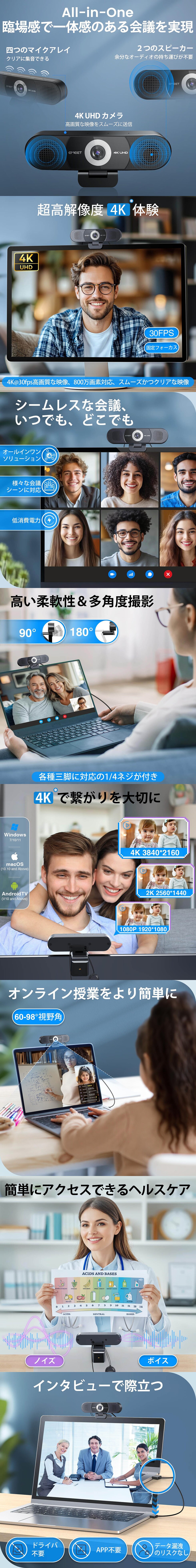 ・【オールインワン設計で会議をシンプルに】・【4K UHD超高解像度&視野角60°~98°調整可能】