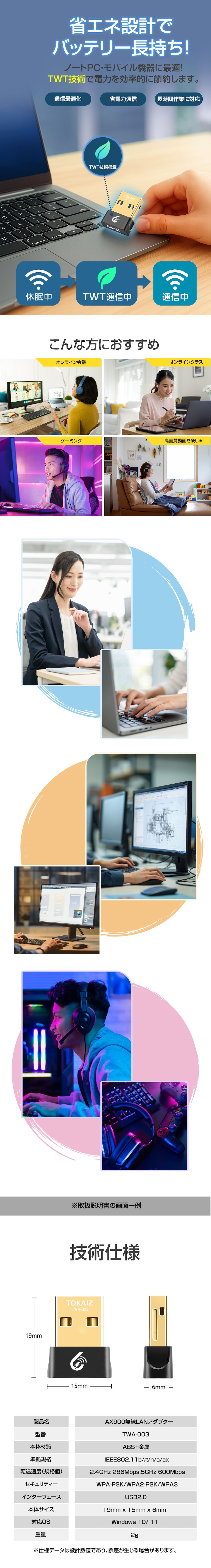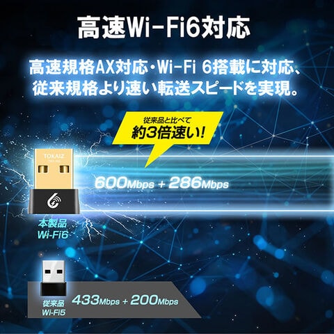 無線LAN子機 WiFi アダプター AX900 usb 無線LANアダプター nano 超小型 Wi-Fi6 ルーター対応 アダプター 高速通信 600+286Mbps 5GHz/2.4GHz Windows11/10/8/7対応 ノートパソコン PC デスクトップ パソコン対応 日本 TOKA