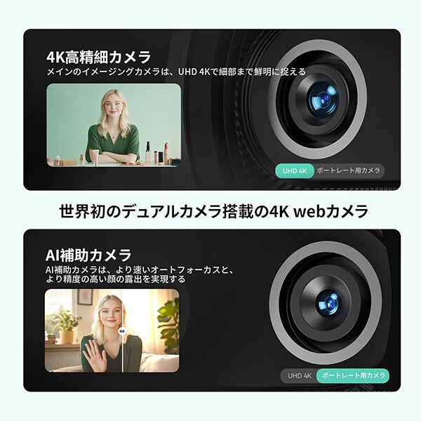 ウェブカメラ WEBカメラ 4K デュアルカメラ搭載 AI オートフォーカス 三つ ノイズキャンセリング マイク 3種類の集音モード USB-C to C/A接続 ライブ配信やコンテンツ制作に最適 可愛い プレゼント Switch 2 カメラ EMEET Piko+