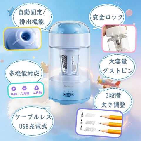 【全自動 手放しOK】 鉛筆削り 電動 子供 全自動 充電式 鉛筆けずり えんぴつ削り USB Type-C 自動送り 自動戻り 芯先調整 小学生 進学 入学準備 入学祝い 1年保証 ギフト TOKAIZ Lite