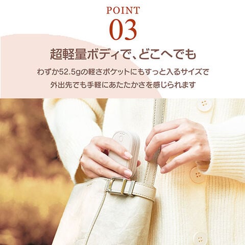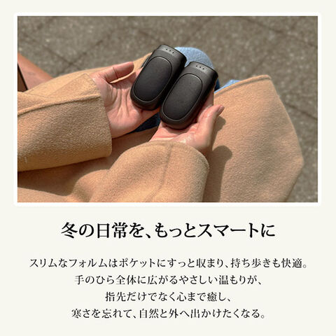 ・【秒速発熱】わずか1秒であたたかく、寒い日でもすぐに快適なぬくもりを実感できます。・【超小型ミニサイズ設計】手のひらにすっぽり収まる可愛いサイズ感で、女性の方にも使いやすいデザインです。