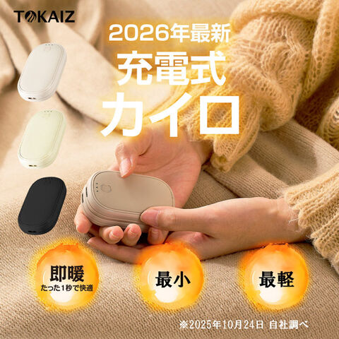 TOKAIZ【即暖・1秒速熱】充電式カイロ マグネット式 3段階温度調節 かわいいデザイン 4000mAh大容量 USB充電 軽量コンパクト 繰り返し使える 電気カイロ 防寒対策 冬 冷え性対策 持ち運び便利