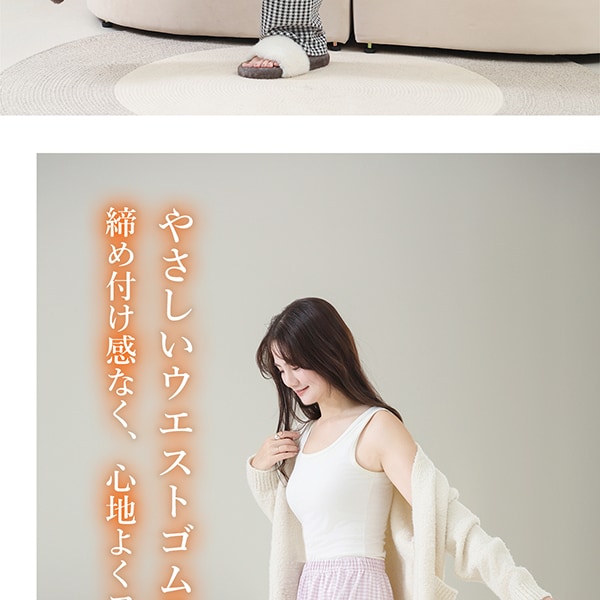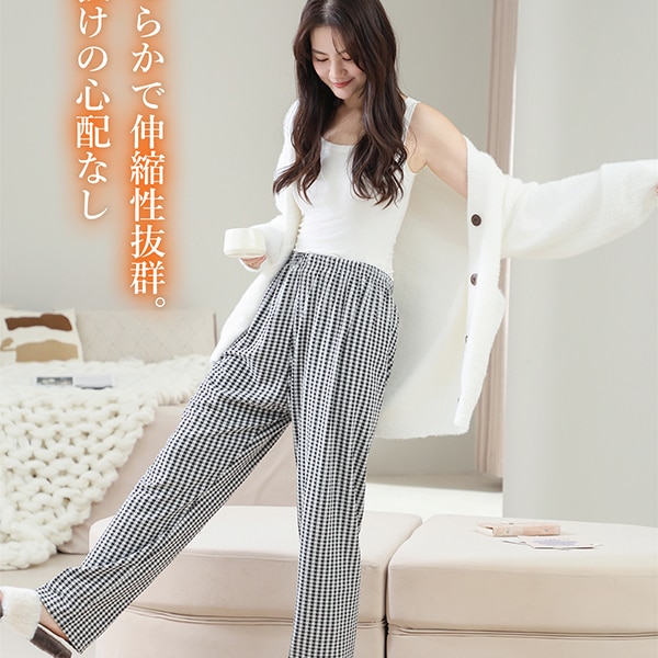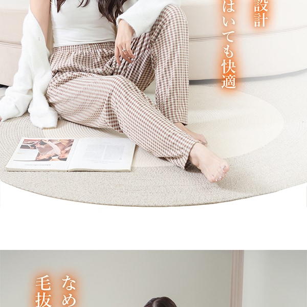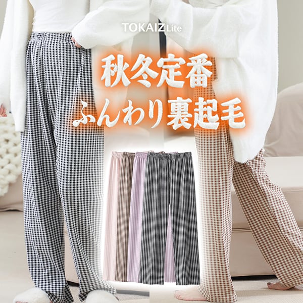 ・【秋冬の定番!ふんわり裏起毛】内側はふんわり起毛仕様で、寒い季節でも包み込まれるようなあたたかさ。素肌に触れてもチクチクせず、快適な着心地です。・【やさしいウエストゴム設計】締め付け感を軽減し、長時間のリラックスタイムでもストレスフリー。おうち時間にもぴったりです。