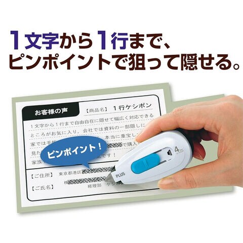 1行だけ文字を隠したい!という方へ!テープ式なので1文字から1行まで狙って隠せるタイプです。