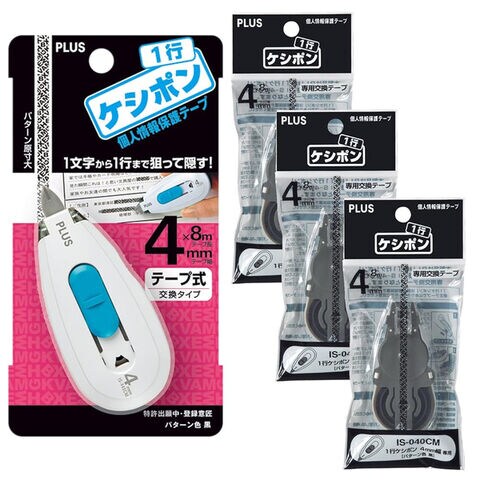 プラス 個人情報保護テープ 1行ケシポン ホワイト 本体+交換テープ3個