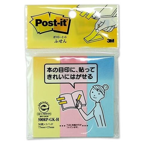 本の目印に貼ってきれいにはがせる、3色入りポストイットです。